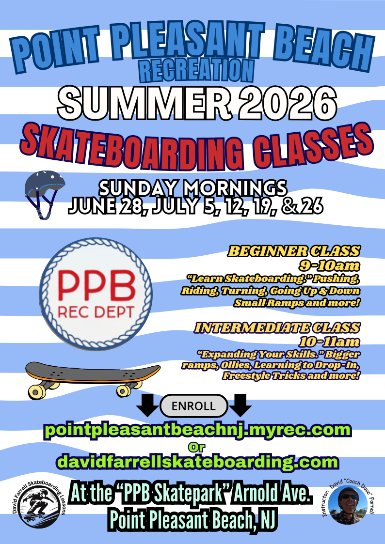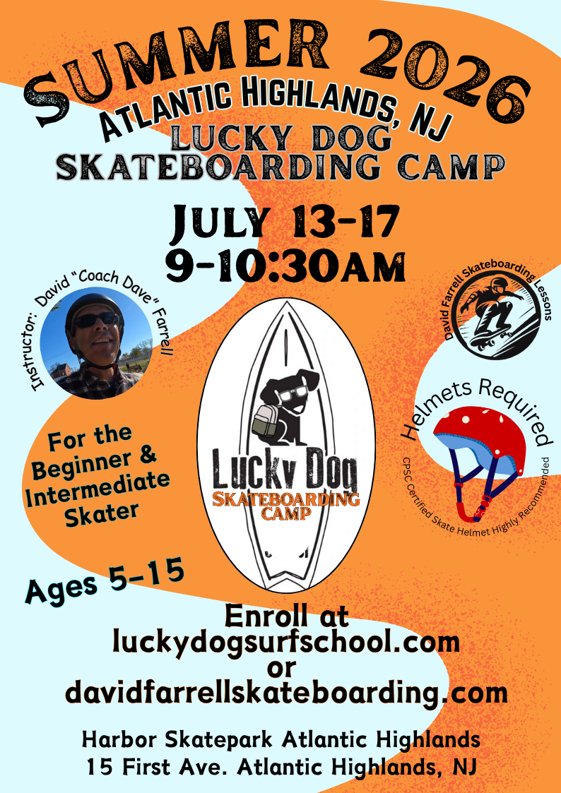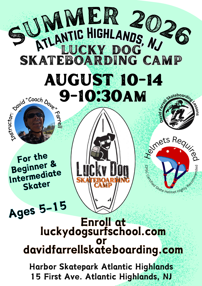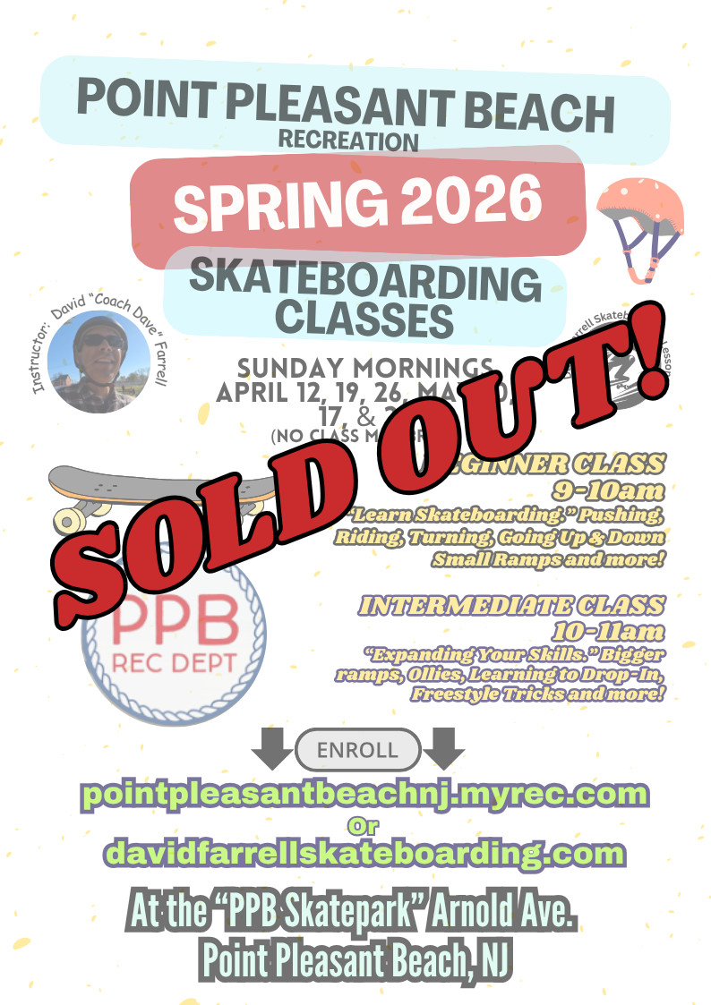Skateboarding lessons for kids and adults.Skateboarding lessons at the Jersey Shore and the greater New Jersey area. Welcome to the website of David “Coach Dave” Farrell Skateboarding Lessons in New Jersey and the Jersey Shore