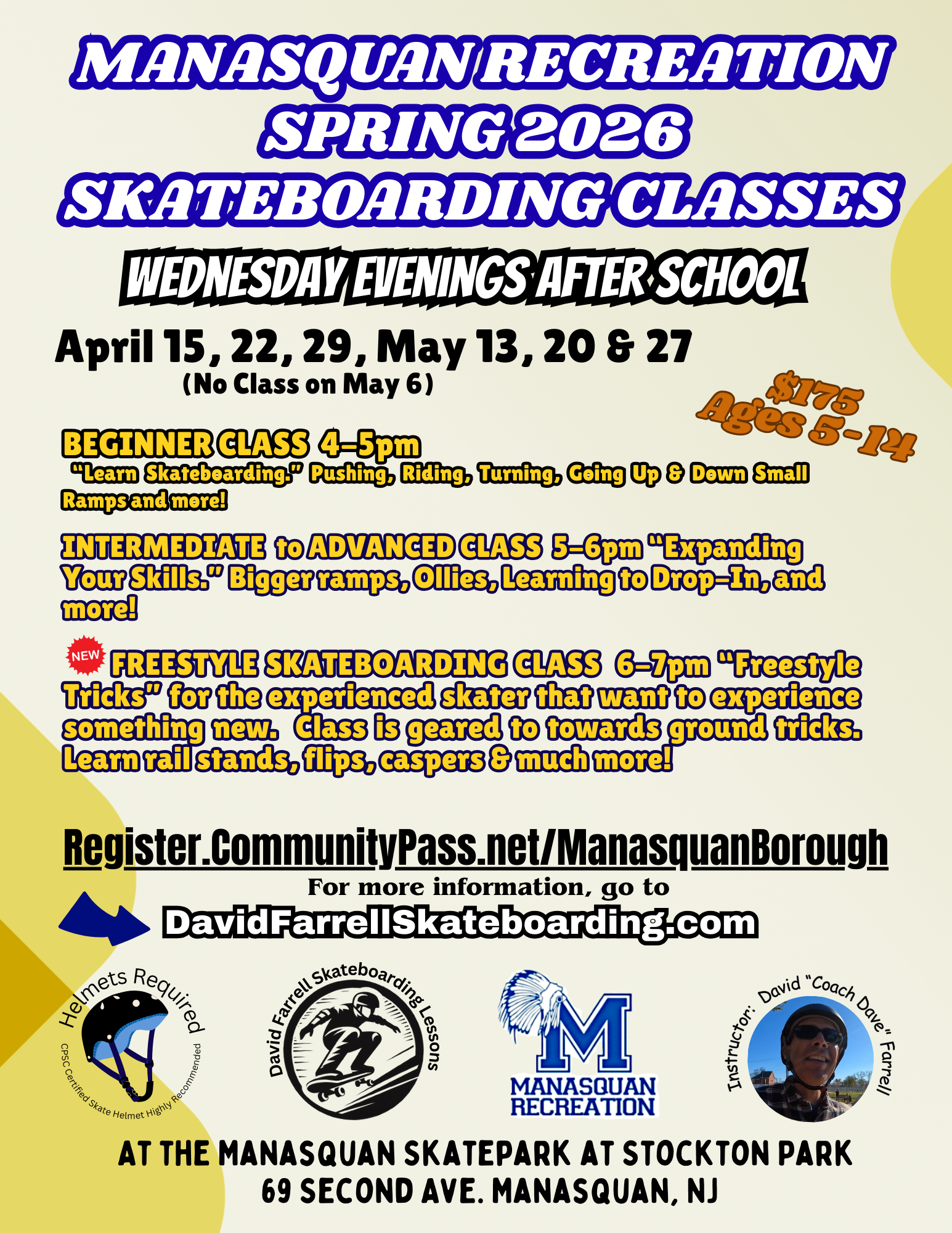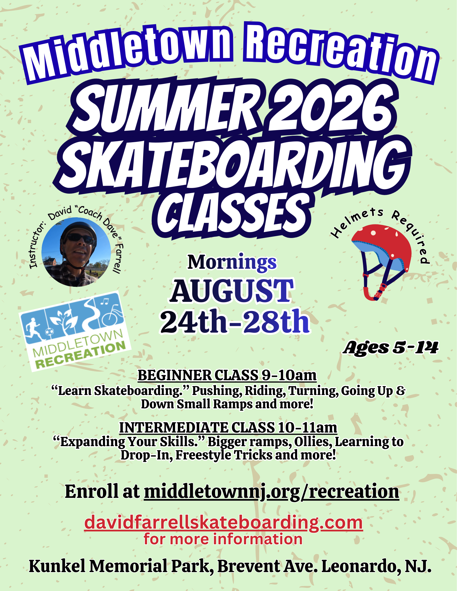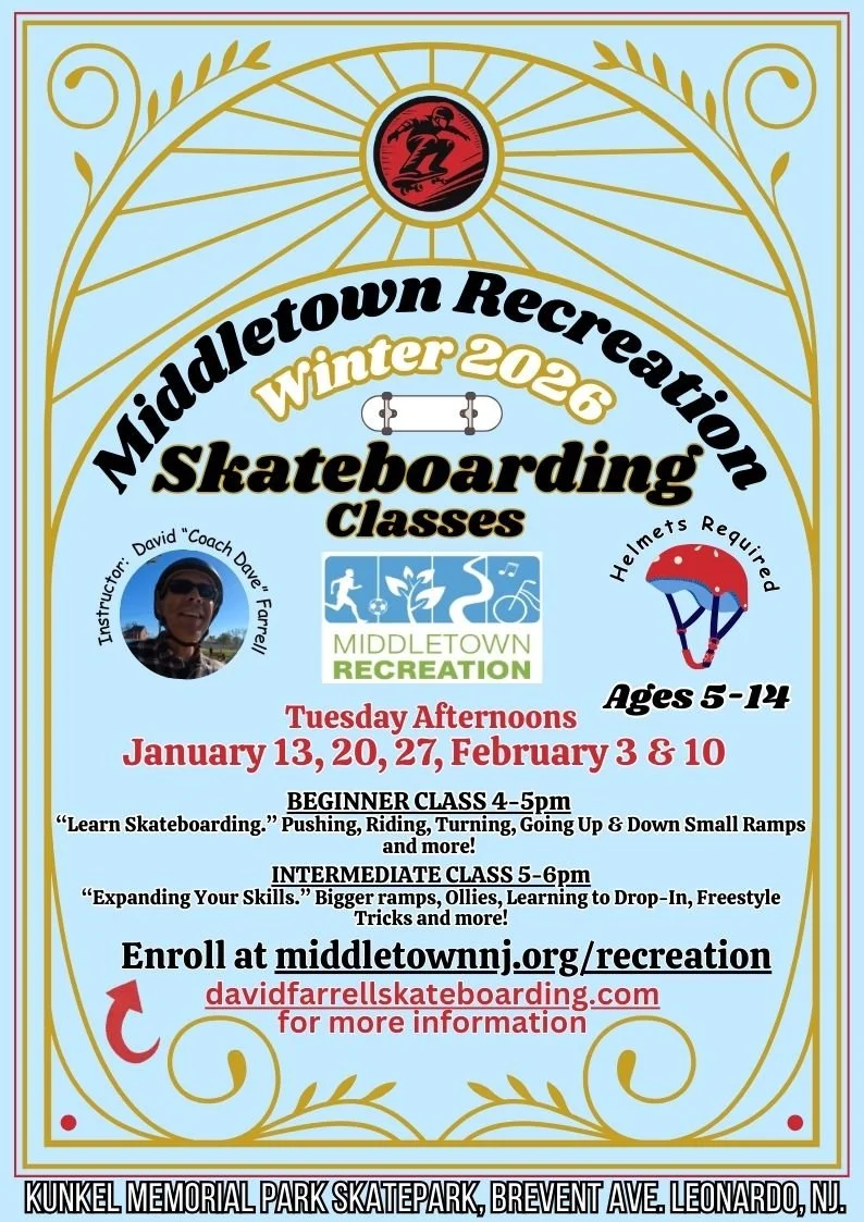 Skateboarding lessons for kids and adults.Skateboarding lessons at the Jersey Shore and the greater New Jersey area. Welcome to the website of David “Coach Dave” Farrell Skateboarding Lessons in New Jersey and the Jersey Shore